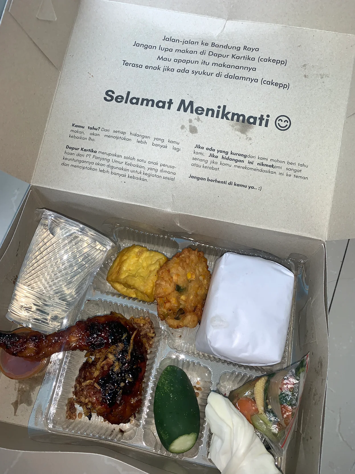 Makanannya enak dan harganya terjangkau. Sambelnya bikin nagih! Pokoknya sukses terus buat nasi box-nya ❤️